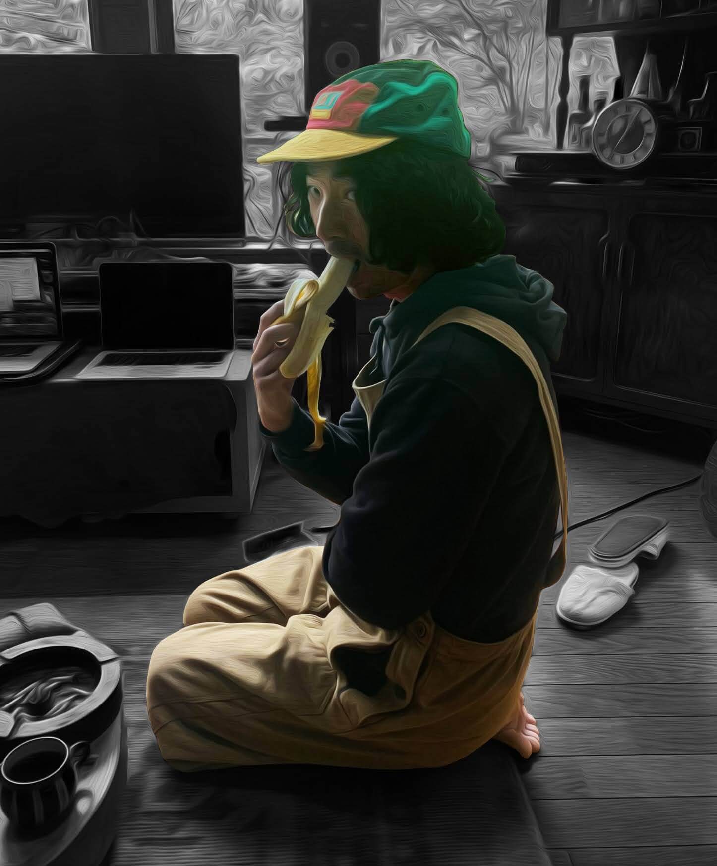 At the same time, he is involved in collaborative activities with the "ANTIBODIES Collective," a multi-disciplinary arts organization, and in musical activities under the aliases "MINZOKU M" and "BANANAperry".